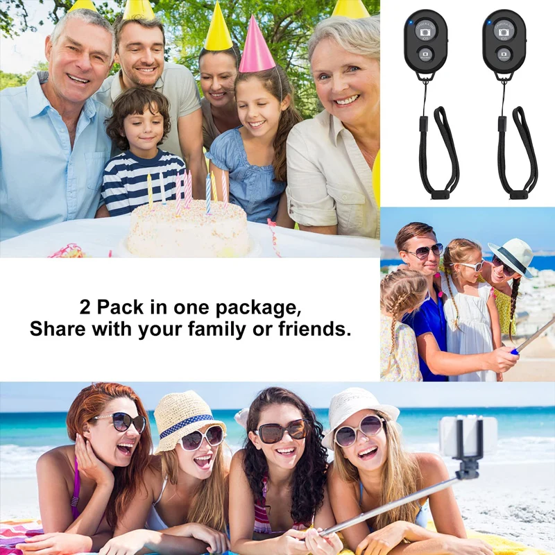 🌟 Perfect for Selfies & Group Shots – Take your selfies to the next level! The Bluetooth Camera Remote is the perfect solution for group shots and solo selfies, allowing you to capture pictures at any angle and distance. No more awkward arm stretches or missing out on the action.